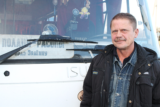…В 8.45 я была на территории автопредприятия №10. Увидев автомобиль с надписью «Пресса», стоящие поодаль водители заулыбались. В их глазах читался явный интерес: «Зачем и к кому приехали?» Я сама расставила все точки над і, спросив у них: «А как мне найти Михаила Николаевича Стовпца?» «А вот он…», – услышала в ответ и посмотрела в сторону, куда кивнул один из водителей. В считанных метрах стоял автобус с традиционной табличкой «Россоны-Полоцк через Зелёнку» за лобовым стеклом. Через несколько минут появился и сам его хозяин.