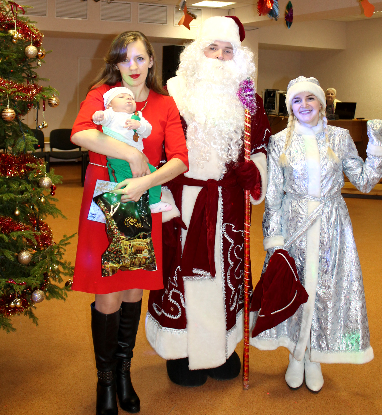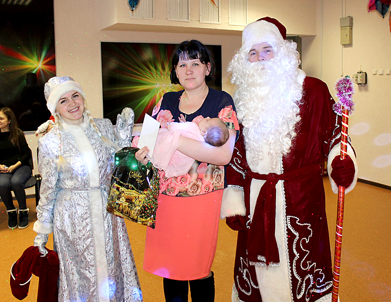 Музыкальнее подарки собравшимся дарили юные участники художественной самодеятельности Россонского Центра культуры и народного творчества. Ну и, конечно, какое новогоднее представление без Деда Мороза и Снегурочки. Сказочные персонажи вручили подарки самым маленьким участникам торжества. Сегодня это Варвара Кулдо, Ульяна Прохорова, Егор Макаренко, Марьяна Устиненко, Дмитрий Синкевич, Дмитрий Ковалевский, Никита Соколович, Глафира Ермоленко, Кристина Калимаер, Лев Быщев, Юрий Карташов, Максим Миронович, Владислава Синица. А потом был первый в жизни новорождённых хоровод вокруг ёлочки.